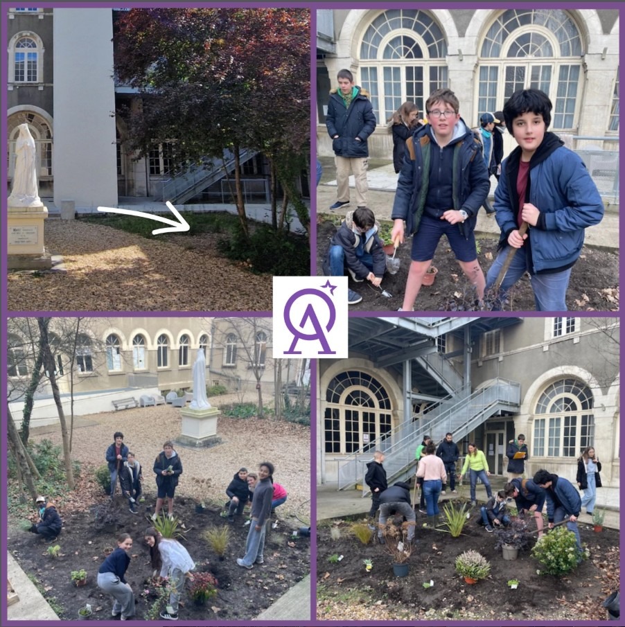 Ce vendredi 12 décembre, le groupe de collégiens de l’ASSOMPTION Vert a réaménagé l’espace vert de la cour d’Honneur.