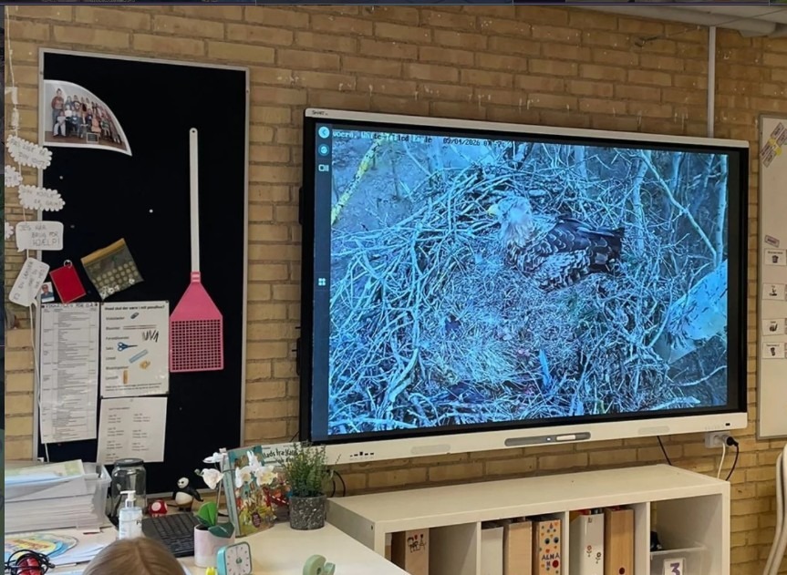 Au tableau numérique, une webcam diffuse en direct le nid d’un aigle : les enfants suivent chaque jour l’évolution des petits avec curiosité et émerveillement.